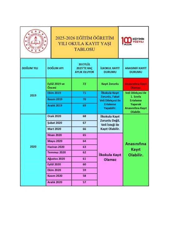 2025-2026 Eğitim-Öğretim Yılı Anasınıfı Kayıt Yaşı